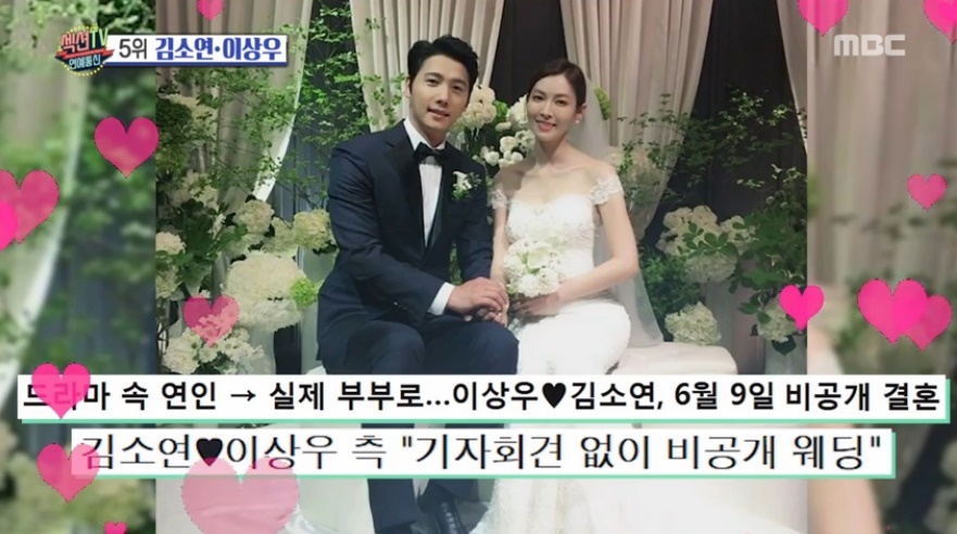 11일에 방송된 MBC 예능프로그램 <섹션TV 연예통신>에서는 드라마 속 연인에서 실제 부부가 된 김소연과 이상우 커플의 결혼 소식을 전했다.