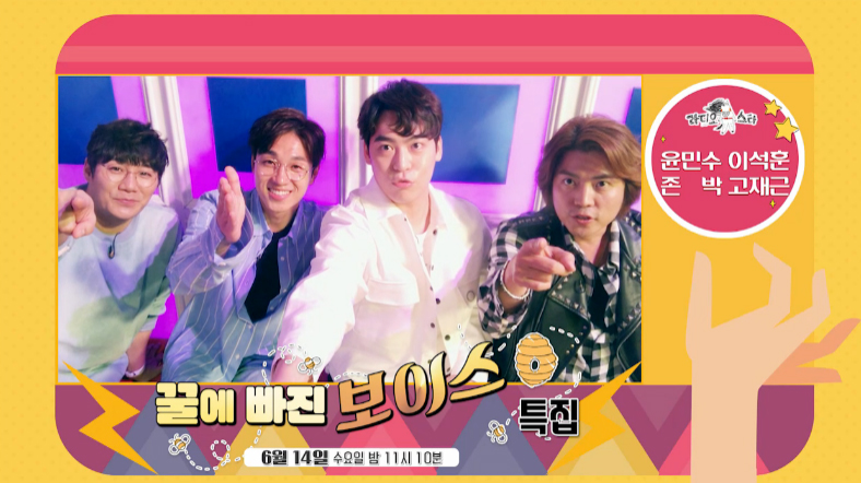 한편 윤민수·이석훈·존박·고재근+ 스페셜MC 정준영이 출연하는 MBC 예능프로그램 <라디오스타> '꿀에 빠진 보이스' 특집은 14일(수) 밤 11시 10분에 방송된다.