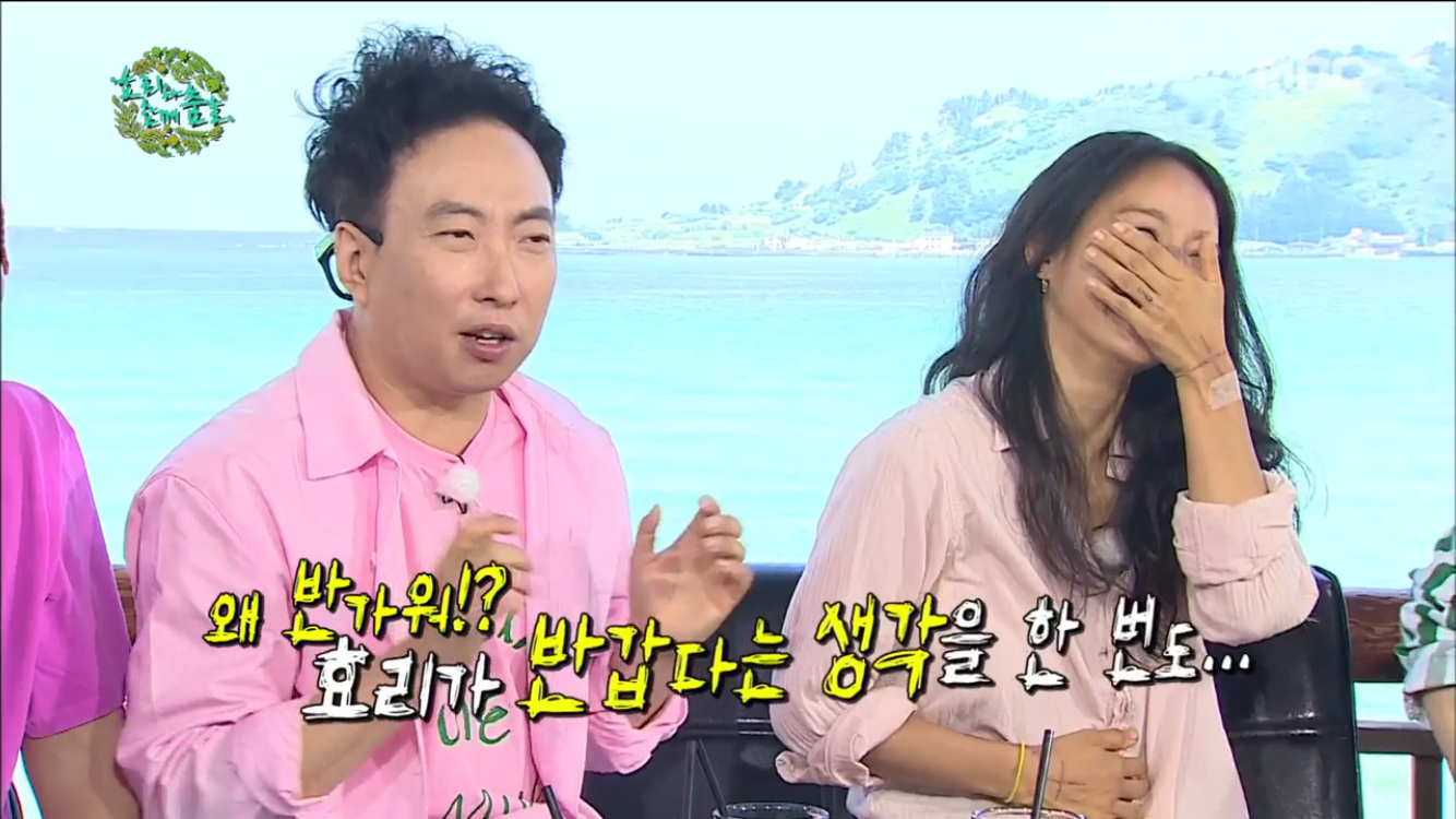 이어 이효리는 박명수에 "진지하게 내가 안 반갑냐. 왜 자꾸 방송쪽으로만 얘기하려고 하냐"고 물었다. 박명수는 "별로 교류가 없어서 반갑진 않다. 왜 반갑냐. 나는 효리가 반갑다는 생각을 해 본 적이 없다"며 솔직한 답변으로 폭소를 안겼다.