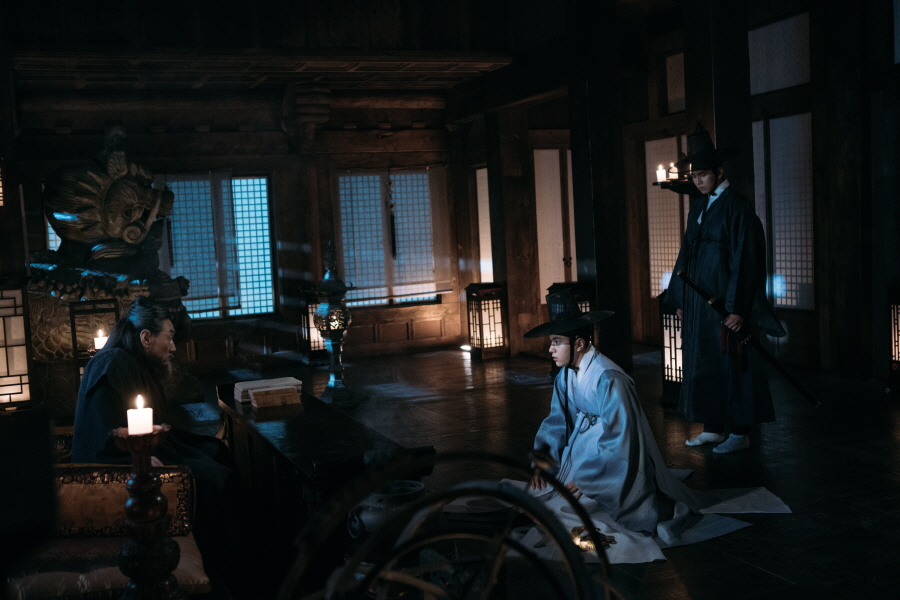 공개된 사진 속에는 이선(엘)은 이글이글 타오르는 눈빛으로 대목(허준호)을 바라보고, 대목은 의중을 파악할 수 없는 미묘한 표정으로 이선을 응시하고 있는 것. 과연 엘(김명수)과 허준호가 의기투합과 반목 중 어떤 결과를 이뤄낼지 긴장감을 높이고 있다.