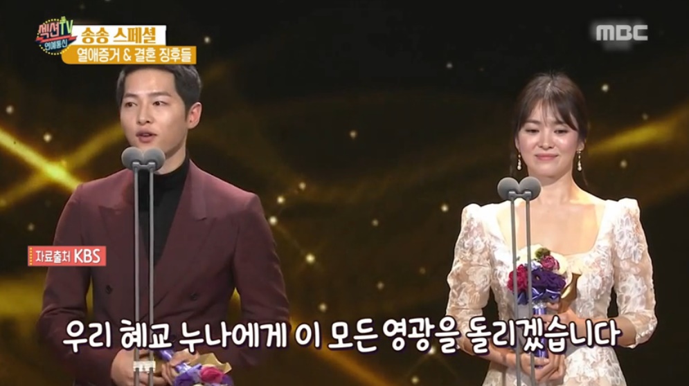 9일에 방송된 MBC 예능프로그램 <섹션TV 연예통신>에서는 송혜교와 송중기의 열애설부터 결혼발표까지의 과정을 다뤘다.