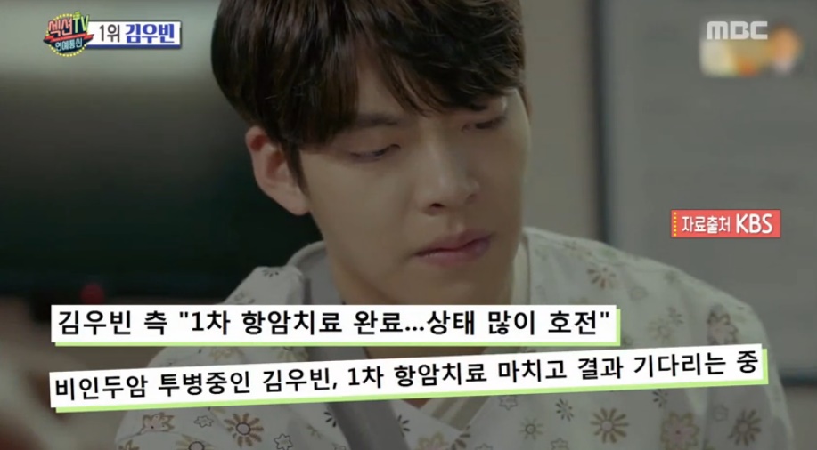 30일에 방송된 MBC 예능프로그램 <섹션TV 연예통신>에서는 희귀병인 ‘비인두암’으로 투병중인 김우빈의 소식을 전했다.