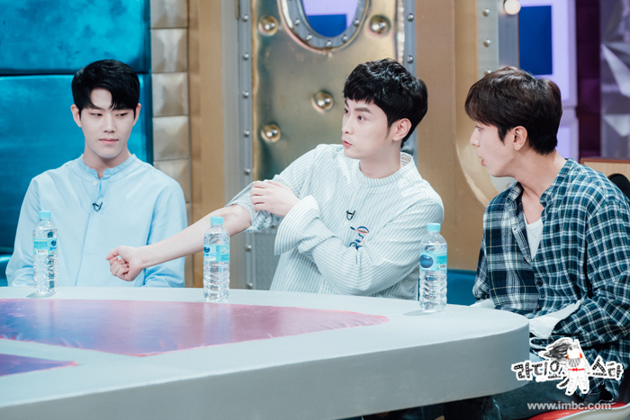 포토로 미리 보는 <라디오스타> 우리가 대세, '핫 브라더스'들이 온다!등장부터 이미 설렌다. 2일(수) 방송되닌 MBC 예능프로그램 <라디오스타> '핫 브라더스! 라스를 부탁해' 특집에 배우 강하늘, 동하부터 버즈의 민경훈, 씨앤블루 정용화가 출격해 폭염주의보보다 더 핫한 존재감을 뽐낼 예정이다. '미담브라더' 강하늘은 이날도 선한 웃음으로 시선을 사로잡았고, 최근 <김과장>부터 <수상한 파트너>까지 흥행 2연타에 성공한 '흥행 브라더' 동하, 예능 <아는 형님>을 통해 쌈자 캐릭터로 예능 대세로 거듭난 '예능 브라더' 민경훈, 식지 않는 인기를 자랑하는 꽃미남 밴드 씨엔블루로 '한류브라더' 타이틀을 쥐고 있는 정용화, 여기에 음악부터 예능, 예술까지 모두 섭렵한 스페셜 MC 솔비가 출격을 예고하고 있다. 시원시원한 입담과 매력을 뽐내며 시종일관 MC들을 웃음짓게 만들었던 핫브라더스와 솔비. 그렇다면 이들의 녹화현장은 어떤 분위기였을까? 지금부터 본방보다 한발 먼저 포토로 만나보자.