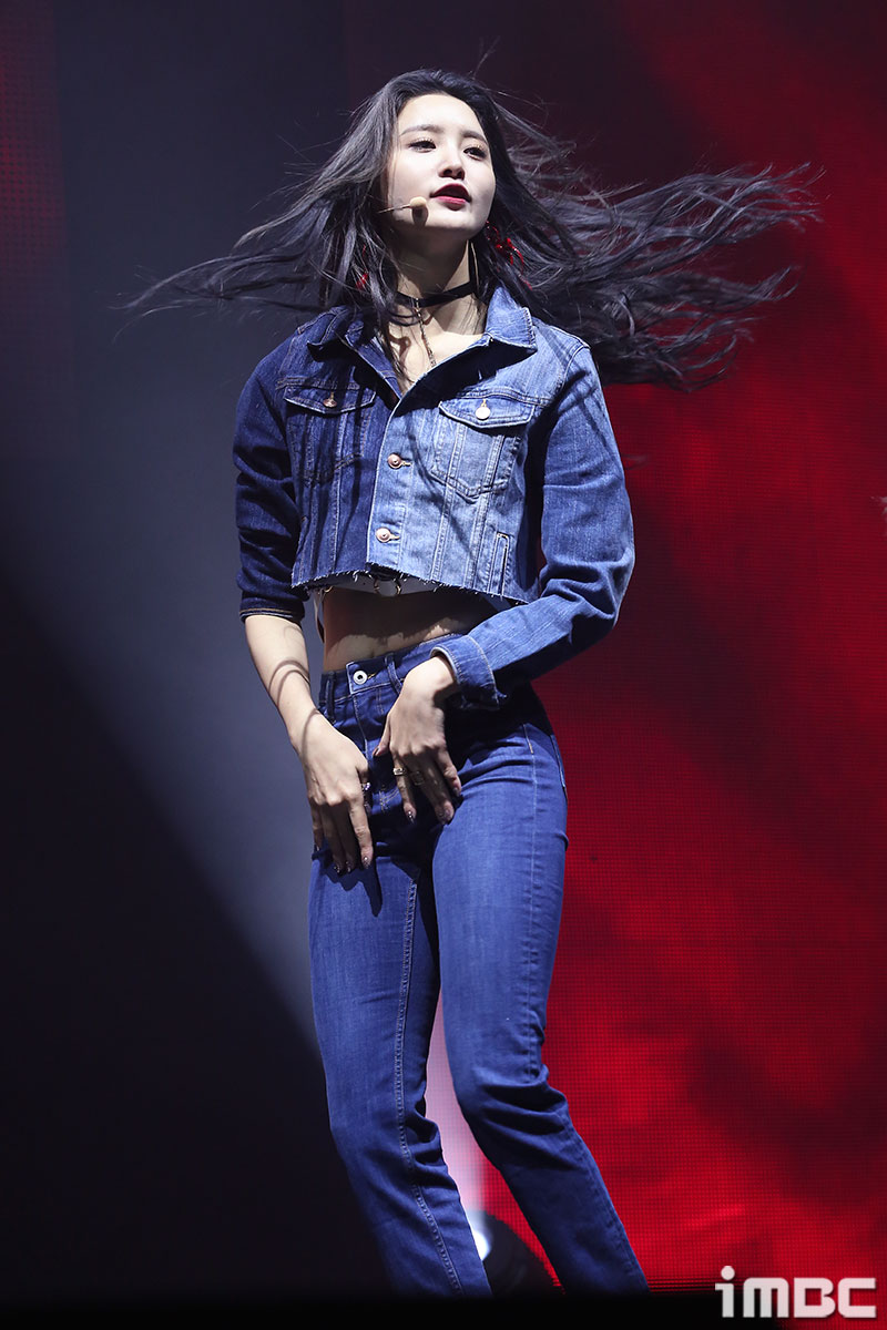 이날 바지+청재킷의 조합이라는 청청코디로 무대에 오른 EXID. 더욱 성숙한 느낌으로 돌아온 막내 정화의 아찔한 Fit을 엿보자.