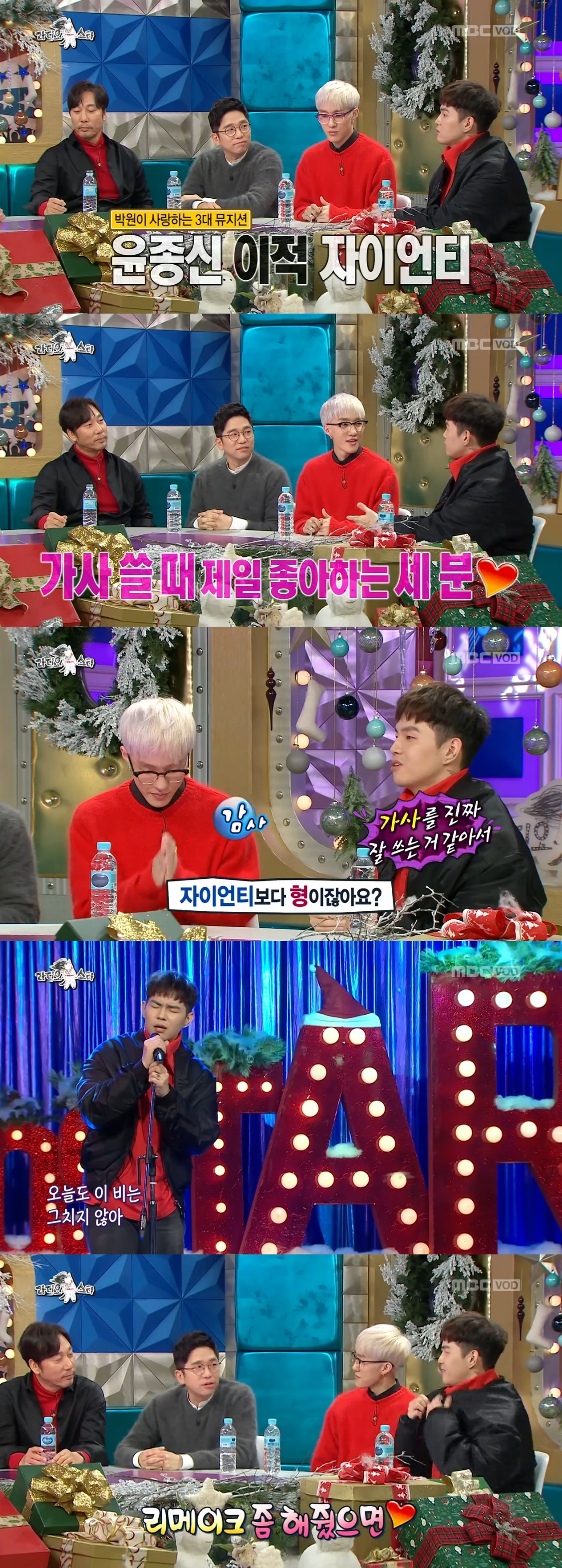 <라디오스타>가 크리스마스 특집으로 따뜻한 감동을 선사한 가운데, 박원의 성덕 커밍아웃 순간이 최고의 1분을 기록했다. 박원은 윤종신-이적-자이언티를 만나기 위해 고심 끝에 <라디오스타>를 선택했다고 밝혔고, 이적의 ‘레인’으로 원곡자인 이적의 극찬까지 받으며 시청자들의 시선을 사로잡았다.