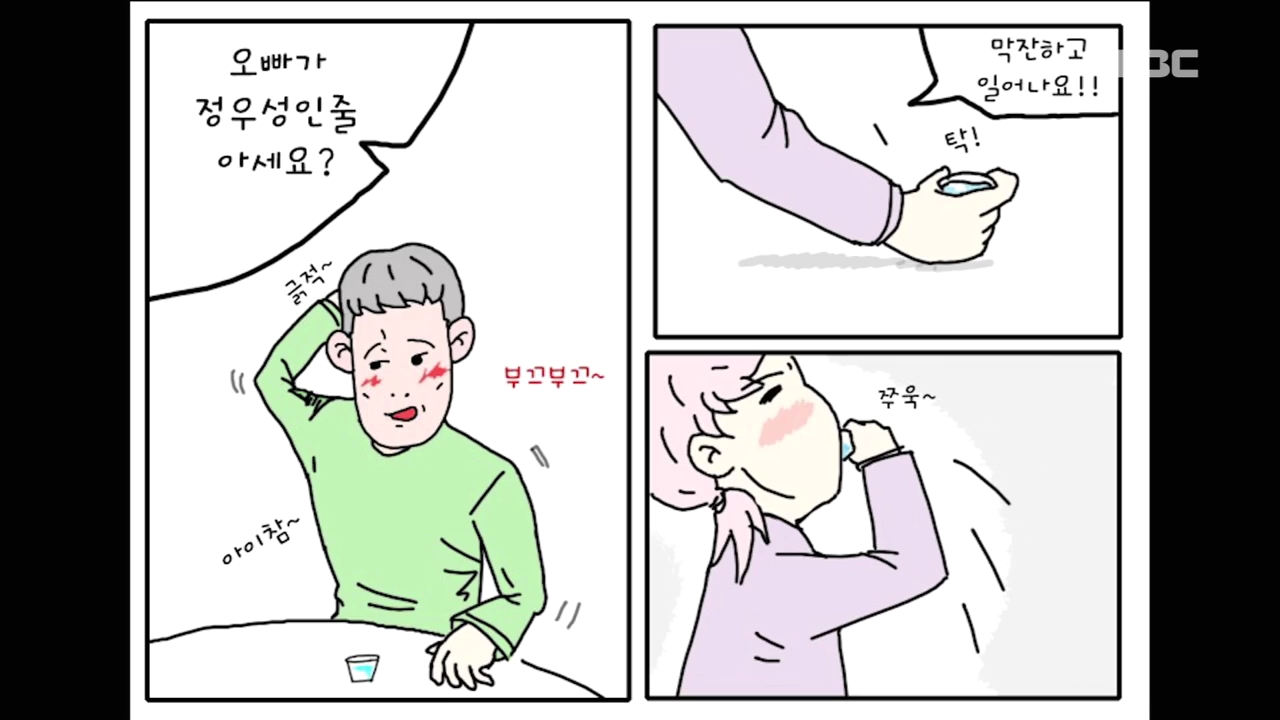 이어 차태현이 준비한 고백 웹툰을 본 김민기는 고백한 날 실제로 키스를 했냐고 묻는 윤종신에게 “고백한 날 집에 바래다주며 첫 키스를 했다. 그런데 (술에 취한) 윤화는 기억을 못 해요”라고 하며 두 사람이 기억하는 첫 키스의 장소가 다르다고 설명해 웃음을 자아냈다.
