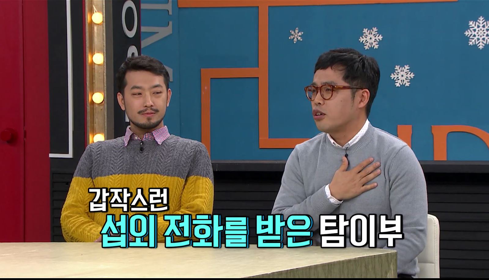 특히 이날 탐이부는 “오늘 내가 앉은 자리는 누가 봐도 기안84 자리다”라는 셀프 디스로 웃음을 선사했다. 그 이유를 묻자 “흐름상 기안84 자리 같다”고 자신에게 섭외 연락이 와 놀랬다며 당시 심정을 전했다. 이어 탐이부는 웹툰작가 김풍이 “비디오스타 나가자”고 말하자마자 번복할까봐 단번에 “알았어”라고 외쳐 섭외하는데 15초밖에 걸리지 않았다고 전해 보는 이들의 웃음을 자아냈다. 이날 탐이부는 완벽한 댄스 퍼포먼스와 깨알같이 준비해온 성대모사를 선보이며 매력을 어필했다는 후문.