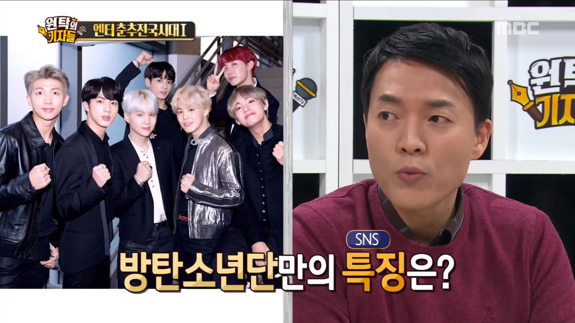 안진용 기자는 “‘왜 빅히트가 이렇게 떴냐’를 분석하면서 하는 얘기가 ‘SNS를 잘했다.’라는 말이 있다.”면서 “일단 빌보드에서 톱 소셜 아티스트상을 BTS가 받았다. 이 상은 전 세계에서 가장 유명한 아이돌이라고 할 수 있는 저스틴 비버가 6년간 독식했던 상이다. 이 상을 가져갔다는 얘기는 지구상에서, SNS에서는 방탄이 가장 유명한 사람이라는 거예요.”라고 말했다.