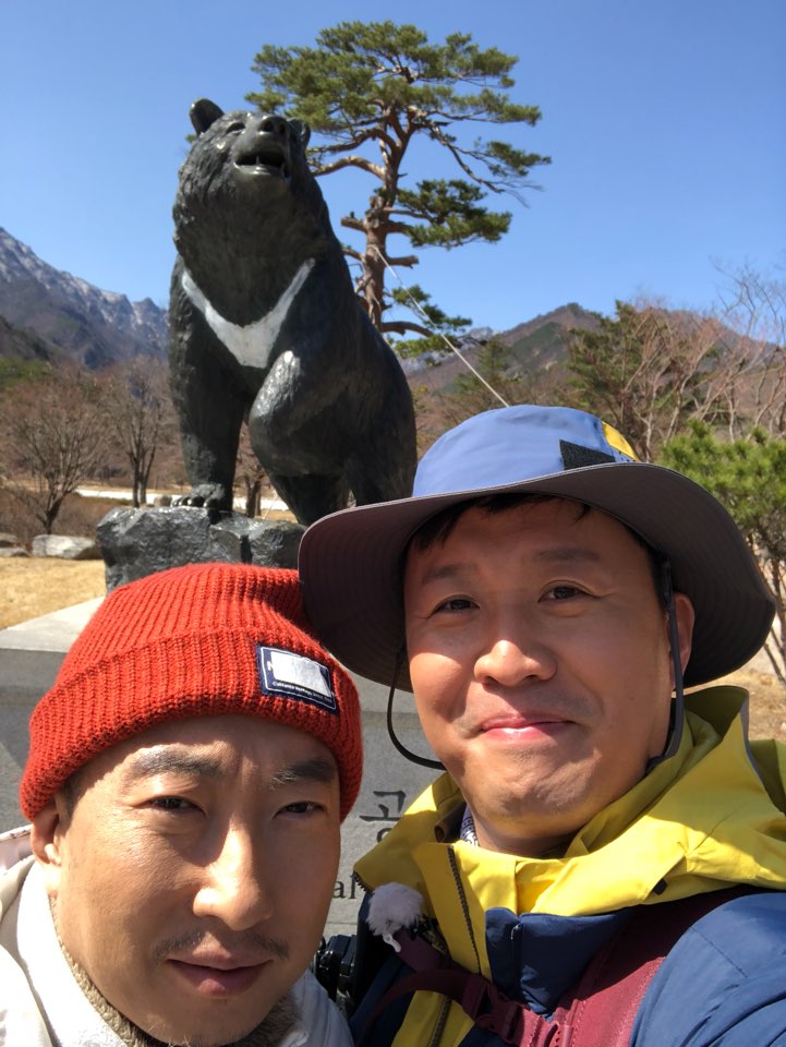 공개된 사진 속 박명수와 정준하가 설악산 국립공원을 상징하는 반달곰 동상 앞에서 얼굴을 맞대고 미소를 머금고 있는 모습은 보는 이들을 웃음 짓게 만든다.