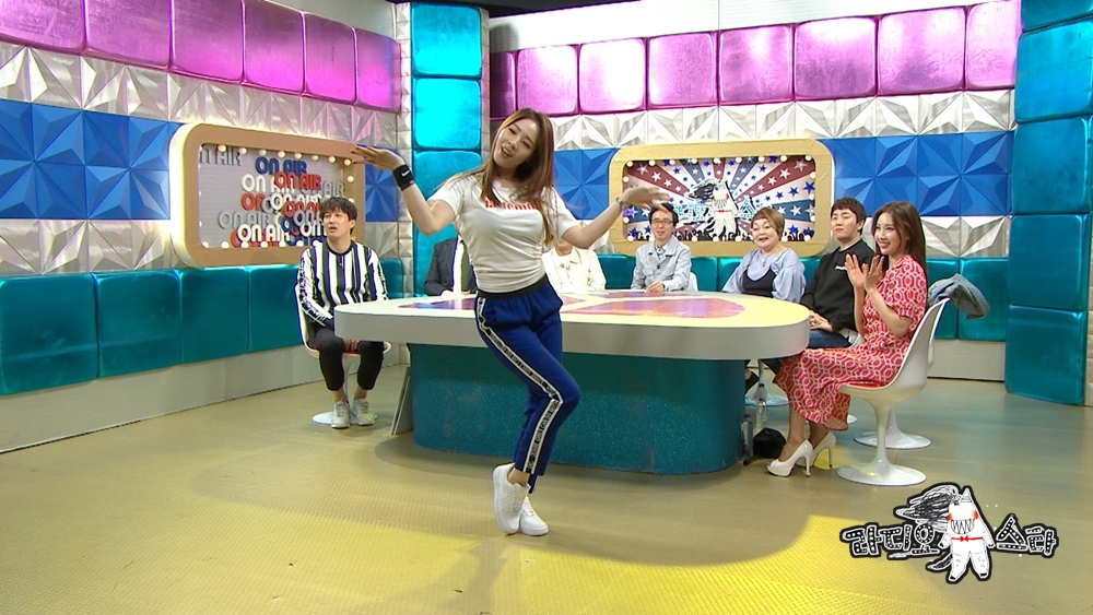 특히 개인기 시간에서는 전 국가대표 리듬체조 선수의 남다른 자태로 시청자들을 사로잡을 것으로 보인다. 신수지는 모모랜드의 ‘뿜뿜’ 커버댄스로 시작해 일자 다리 찢기를 활용한 ‘전갈 포즈’로 4MC를 비롯한 게스트들의 눈을 휘둥그레지게 만들었다.