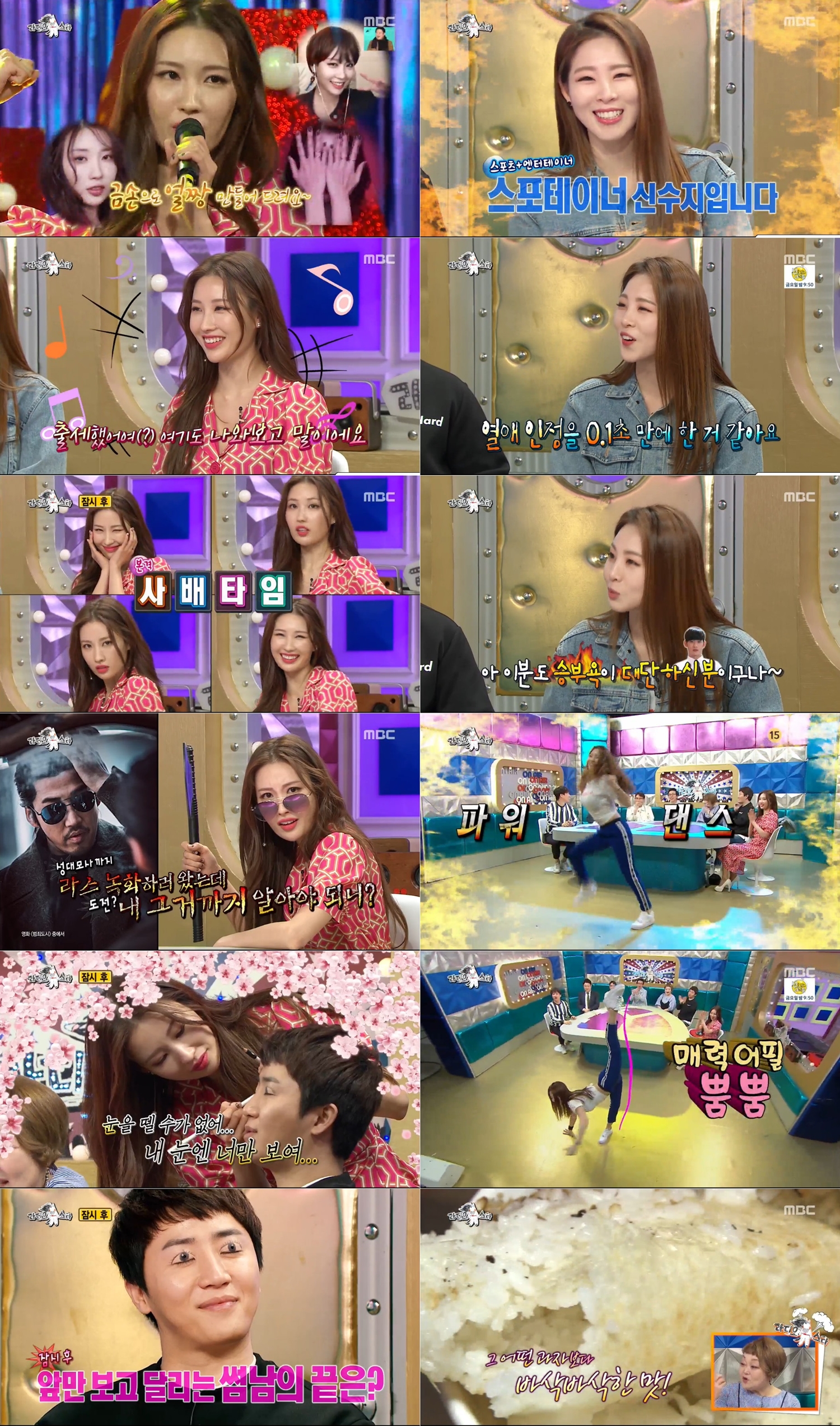 그런가 하면 신수지 역시 연인 장현승과의 열애를 0.1초 만에 인정하게 된 과정을 밝히면서 쿨내를 풍겨내더니 시원시원한 매력으로 시청자들을 사로잡았다. 전직 국가대표 체조요정답게 개인기 역시 화려했다. 발끝으로 머리를 때리는 전갈 킥을 비롯해 ‘뿜뿜’ 커버댄스로 섹시미와 건강미까지 발산한 그녀는 볼로 시작해 볼링, 테니스에 이르기까지 남다른 공 사랑을 증언해 시선을 사로잡았고 김수현의 승부욕을 증언하는 등 적재적소 에피소드로 시원시원한 매력을 발산했다.