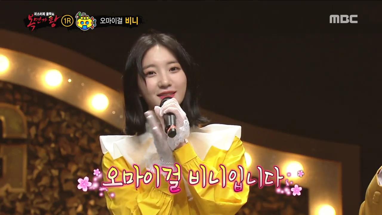 판정단으로 출연한 이계인은 “노래 좋았는데 탈락하니 화가 난다. (비니의) 노래가 심금을 울렸다”라고 평했고, 이에 비니는 “너무 감사해서”라고 하며 눈물을 보였다.