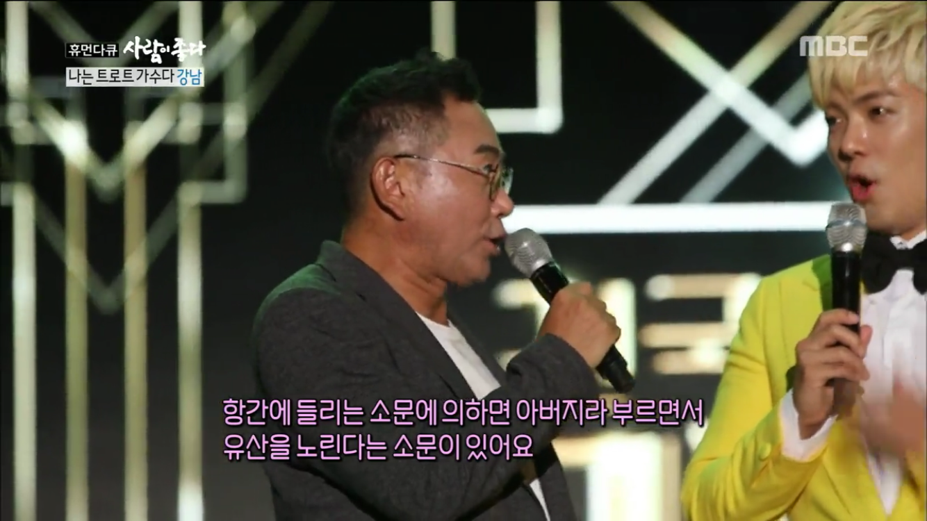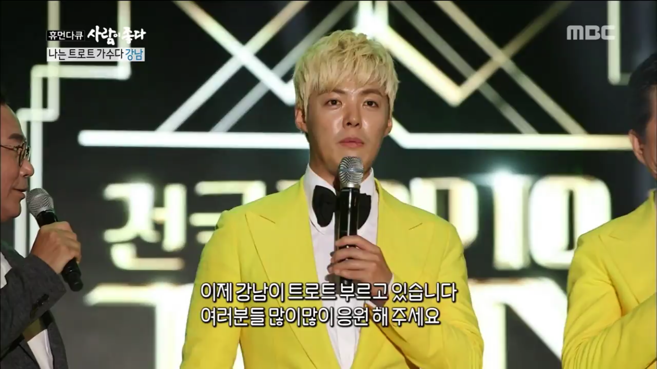 24일(화) 방송된 MBC 휴먼다큐 '사람이 좋다' 에서는 강남이 트로트 가수로 전향해 활동하는 모습이 그려졌다.