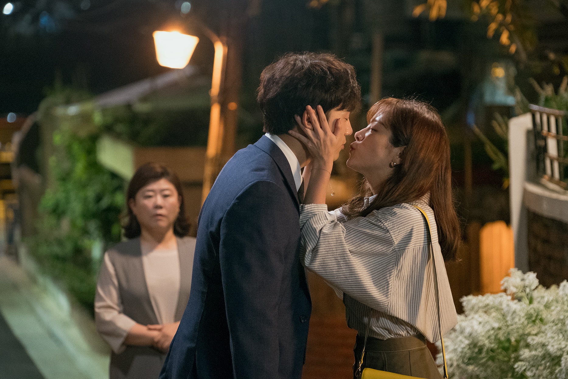 공개된 사진 속 주혁과 우진은 천신만고 끝에 다시 찾은 사랑의 순간을 만끽하고 있다. 서로를 향해 떨어질 줄 모르는 눈빛은 달달하다. 한 순간도 떨어지기 싫은 듯 자석처럼 서로만을 향하던 눈빛이 입맞춤으로 이어지려던 찰나, 소리 없이 등장한 우진 엄마(이정은 분)의 정색 표정이 절묘하게 얽히며 웃음을 자아낸다. 딸의 연애 현장을 목격한 우진 엄마의 떨떠름한 표정 역시 무슨 의미인지 궁금증을 높인다.