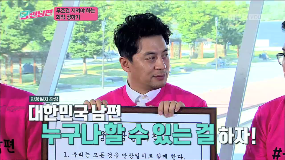 설전 끝에 두 번 째 회칙은 “최선을 다해 끝까지 하자”로 정해졌다. MBC 예능프로그램 ‘궁민남편’은 누구의 남편, 누구의 아빠로 살기 위해 포기했던 대한민국 남편들의 일탈기를 담았다. 매주 일요일 저녁 6시 35분에 방송된다.