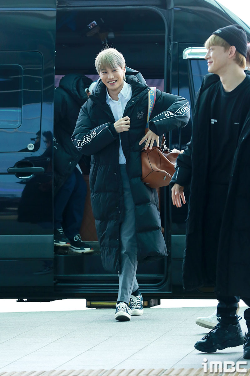 보이그룹 엑소가 19일 오전 일정 차 대만으로 출국하기 위해 인천공항 제 2터미널로 들어서고 있다.