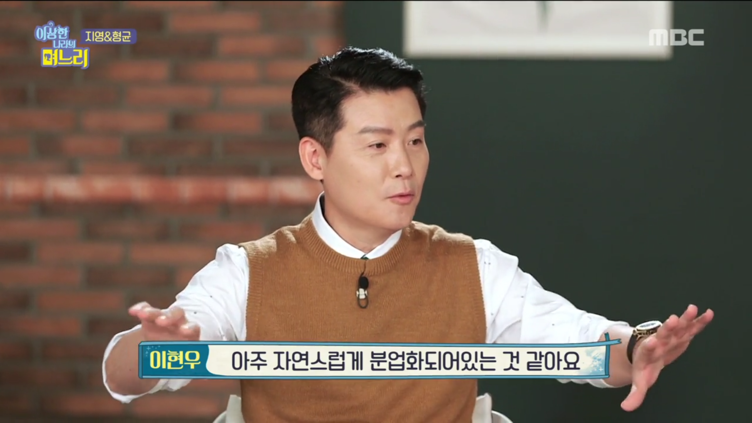 이어 "같이 해야하고 함께 해야하는거니까 분업화를 하면 빨리 끝나고 빨리 쉴 수 있다"고 덧붙였다. 특히 김형균은 요리하는 것을 즐긴다고 밝히며 자취생활을 오래했다고 말했다. 이에 오정태는 "나도 자취생활 오래했는데..."라고 말해 웃음을 자아냈다.