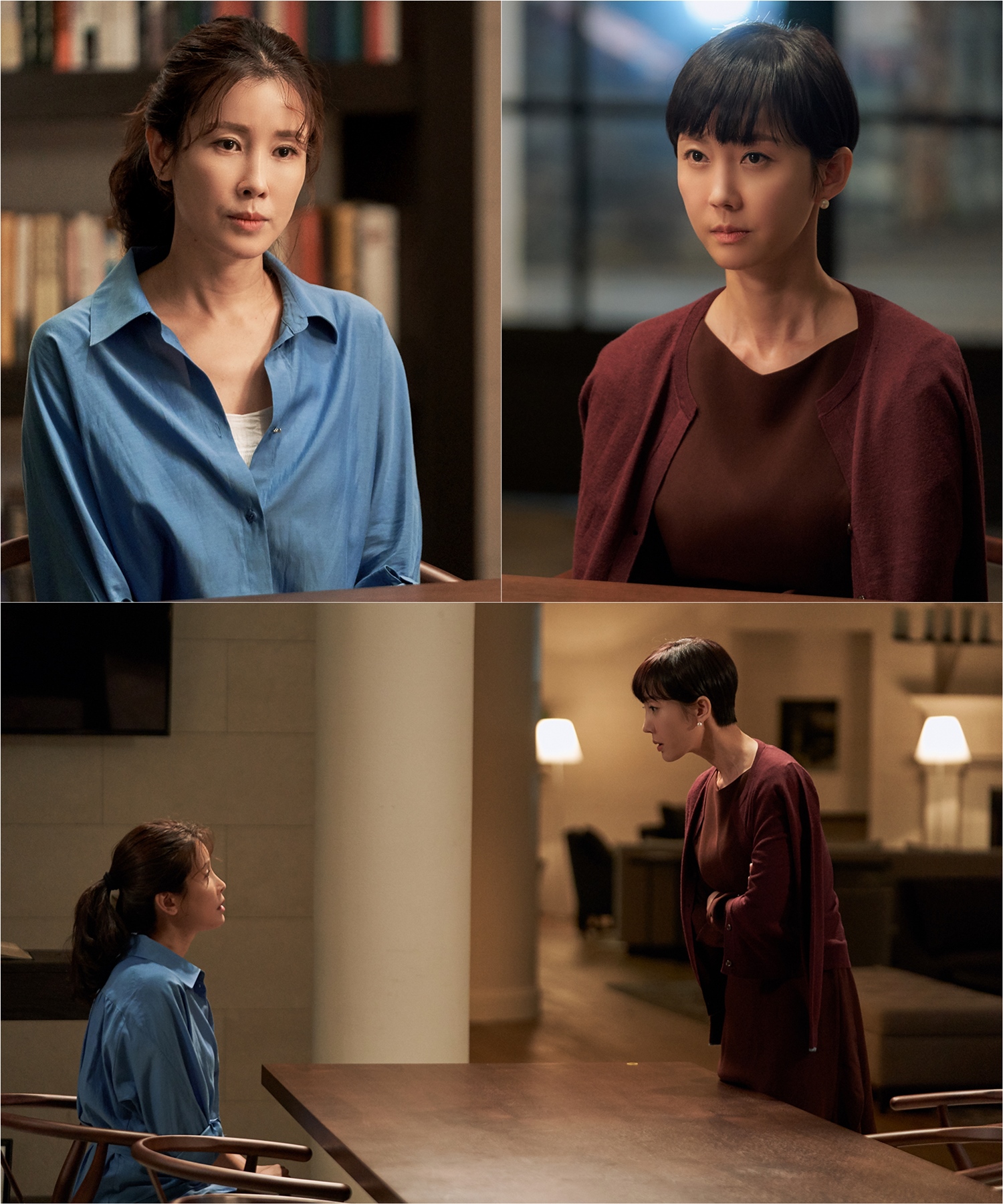 JTBC 금토드라마 ‘SKY 캐슬’(극본 유현미, 연출 조현탁, 제작 HB엔터테인먼트, 드라마하우스, 총 20부작)에서 과거를 숨긴 악연으로 만난 한서진(염정아)과 이수임(이태란). 서진의 치명적인 비밀부터 그녀의 작은딸 강예빈(이지원)의 편의점 사건까지 모조리 수임이 알고 있는 가운데, 오늘(7일) 밤 두 사람이 다시 살벌하게 맞설 예정이다.