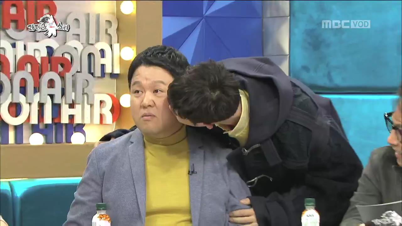 피오가 김구라에게 볼 뽀뽀를 했다.