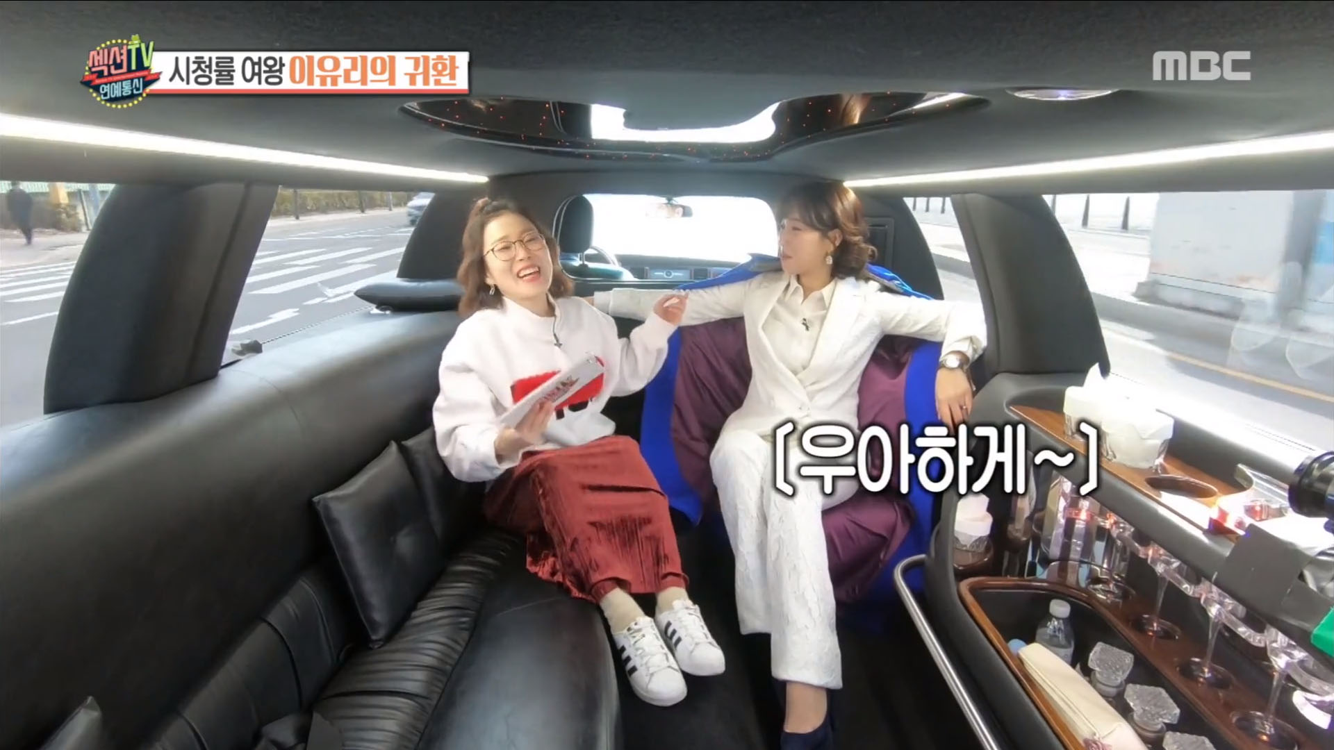 이유리는 자신을 위해 준비된 리무진에 탑승해 우아한 모습(?)을 선보이기도 했다. 리무진에 있는 빈 술병을 발견하고는 “누가 다 마신거지”라며 장난을 치기도 했다. 시청률의 여왕이라는 칭호에 대해서 이유리는 “부끄럽죠. 민망하고”라고 답하며 겸손한(?) 모습을 보이기도 했다. 섹션TV는 올해 19년차 배우인 이유리의 연기인생을 짚어보는 시간을 마련했다. 그러자 “과거로 돌아가나요 혹시?”라며 다급하게 묻기도 했다. 이유리는 ‘학교4’로 데뷔했는데 당시 임수정, 공유와 함께 출연했다. 이유리는 데뷔 때와 지금이 똑같이 연기를 잘한다는 말에 “아 (연기가) 별로 안 늘었다?”라며 장난을 치기도 했다.