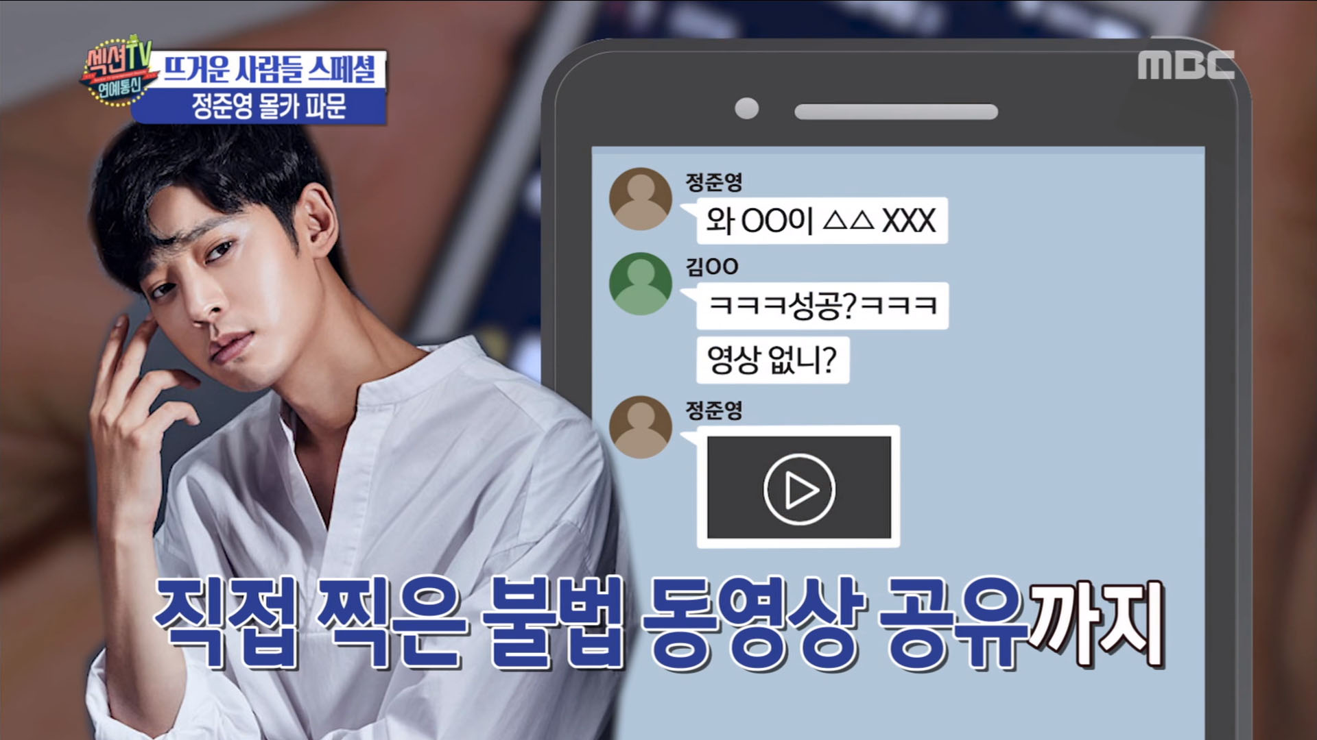 정준영은 취재진들의 질문을 뒤로 한 채 공항을 빠져나갔다. 14일 피의자 신분으로 서울지방경찰청에 모습을 나타냈다. 정준영은 “국민 여러분께 심려 끼쳐 드려서 정말 죄송하고요.”라고 짧게 답변했다. 정준영의 몰카 파문은 승리가 속한 카카오톡 단체 채팅방에서 오간 끔찍한 대화 내용과 몰래 찍은 동영상들이 공개되며 시작되었다. 단톡방에 있는 멤버들은 범법 행위임을 인지했음에도 동영상들을 계속 공유했다. 불법 영상 공유 관련한 대화만 20만건이 넘는 것으로 파악됐다.