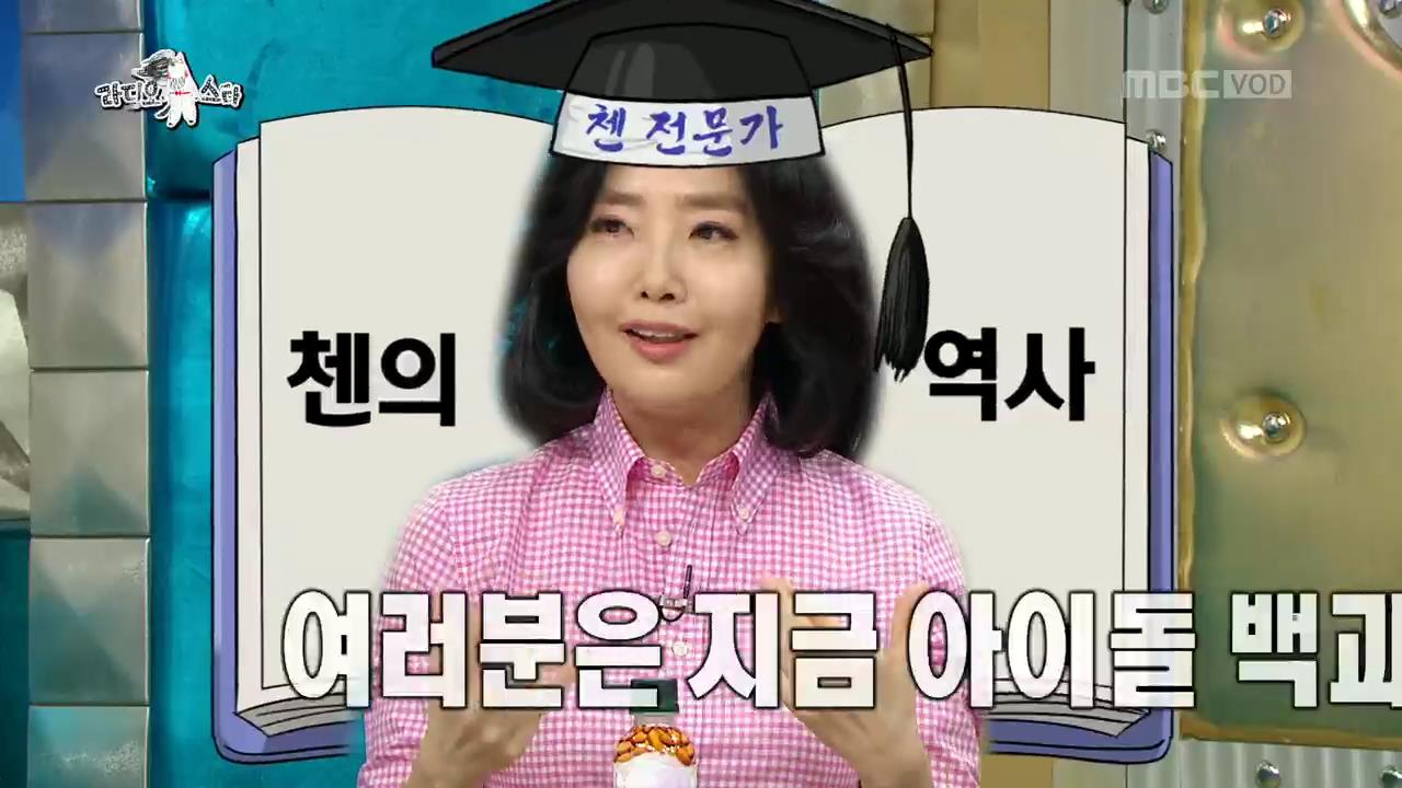 여에스더는 “사람이 예의가 있어야 한다. ‘라디오스타’에 나오는데 췌에엔이 나오는데 모르면 안 되니까 공부를 진짜 많이 왔다”라고 하며 첸에 대하여 자료 조사를 했다고 이야기했다.