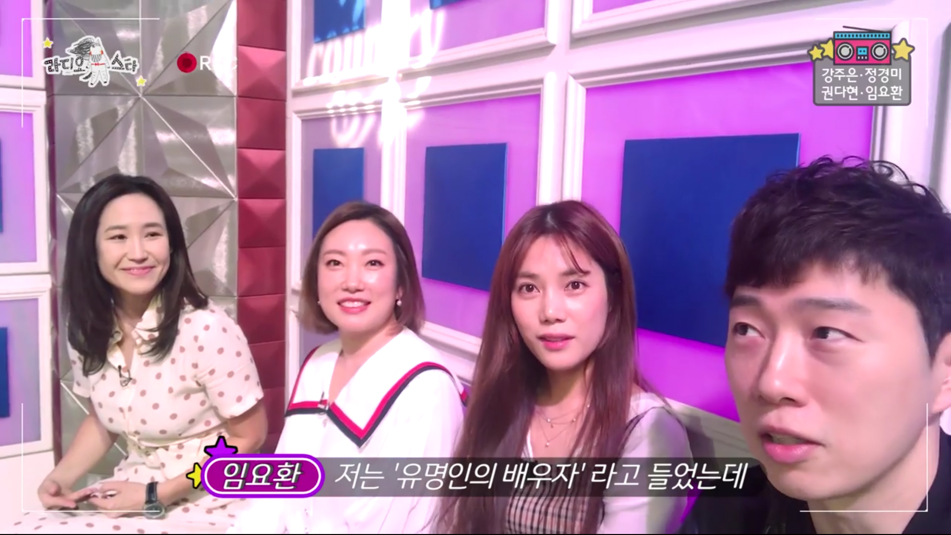 17일(수) '라디오스타'는 '우리 집에 연예인이 산다' 특집으로 꾸며진다. 이 특집에는 연예인의 배우자들 강주은, 정경미, 권다현, 임요환이 출연한다.