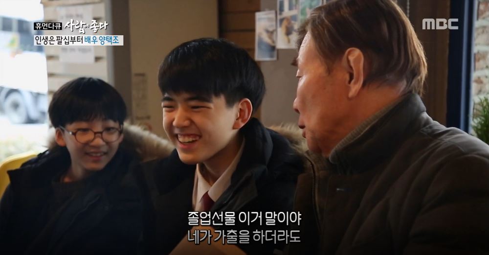 16일(화) 방송된 MBC 휴먼다큐 ‘사람이 좋다’ 310회에서 배우 양택조가 손자 장준우의 중학교 졸업식을 찾은 모습이 공개됐다.
