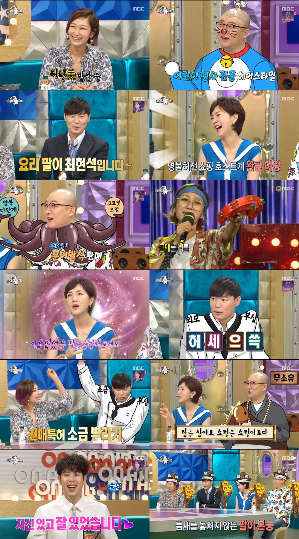 지난 8일 방송된 고품격 토크쇼 MBC ‘라디오스타’(기획 김구산 / 연출 최행호, 김지우)는 ‘팔이 피플’ 특집으로 ‘연예인 쇼호스트 1세대’ 변정수부터 ‘완판 셰프’ 최현석, ‘쇼호스트계의 전지현’ 동지현, ‘월 35개 홈쇼핑을 뛰는 개호스트’ 염경환이 출연해 토크 배틀을 펼쳤다.