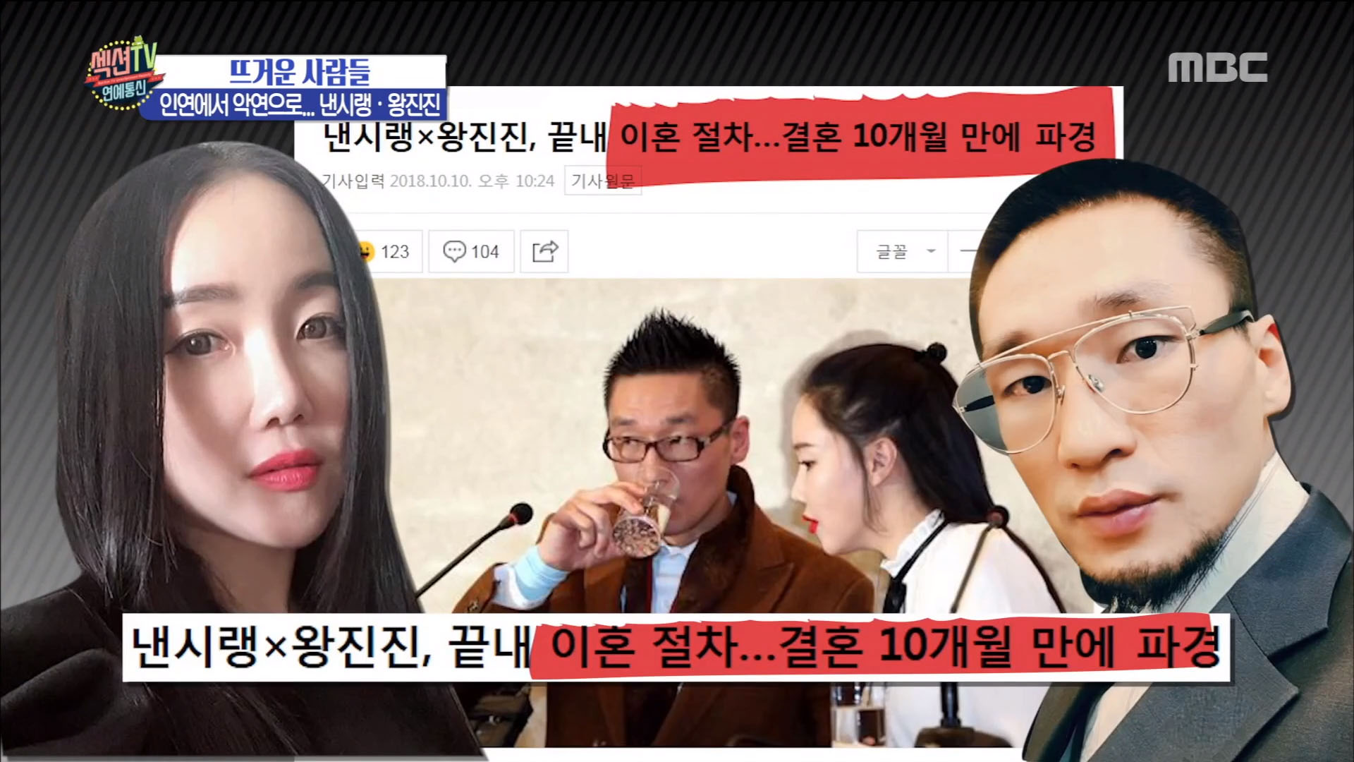 9일 방송된 ‘섹션TV 연예통신’에서는 결혼 10개월 만에 이혼 절차를 진행 중인 낸시랭과 왕진진에 대해 방송했다.
