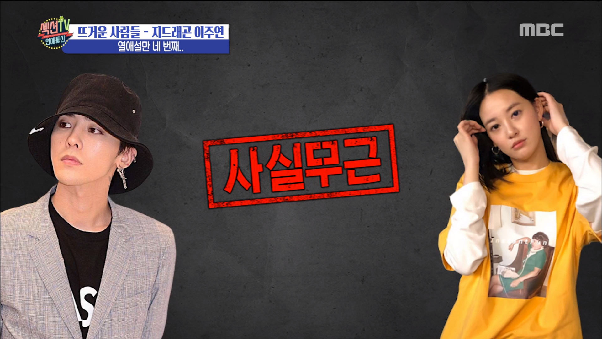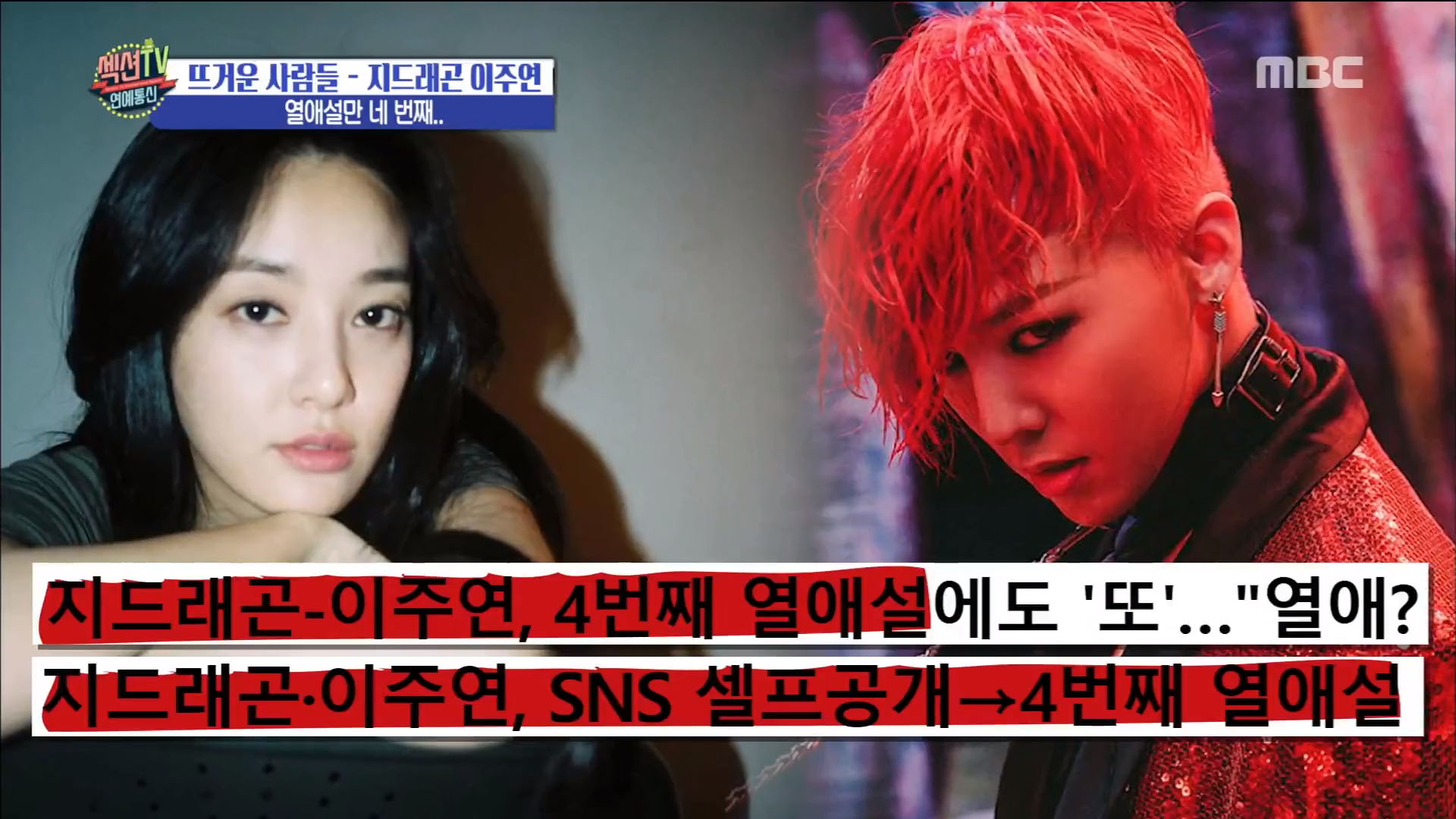 6일 방송된 ‘섹션TV 연예통신’에서는 지드래곤과 이주연의 네 번째 열애설에 대해 방송했다.