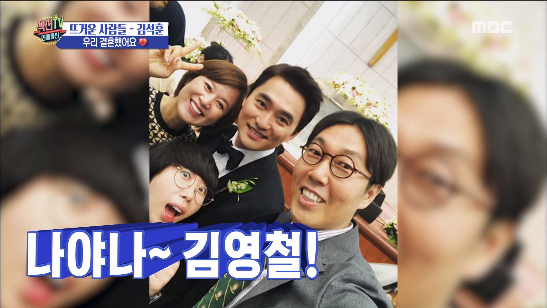 김석훈 결혼식에 참석한 김영철은 ‘인맥 부자’답게 결혼식에 참석한 박미선, 황보, 이상엽 등과 인증샷을 남기기도 했다. 김영철은 김석훈에 대해 교회에서 만나 친하게 된 형이라고 소개하며 천 석 가까이 되는 교회를 가득 채운 결혼식 현장에 대해 밝히기도 했다.