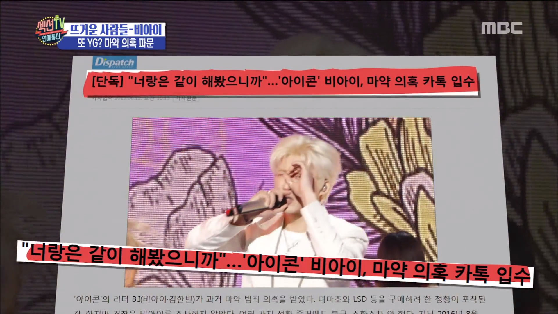 13일 방송된 ‘섹션TV 연예통신’에서는 아이콘의 리더, 비아이의 마약 논란에 대해 방송했다.