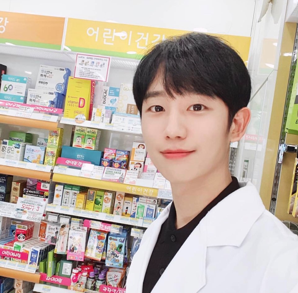 배우 정해인이 '봄밤'의 약국 셀카 사진을 공개했다.
