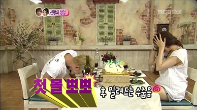 7일 방송된 <우리 결혼했어요>에서 강소라는 이특의 생일 선물로 첫 뽀뽀를 감행했다.