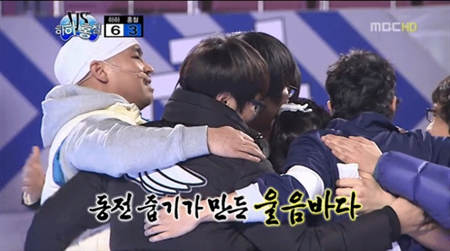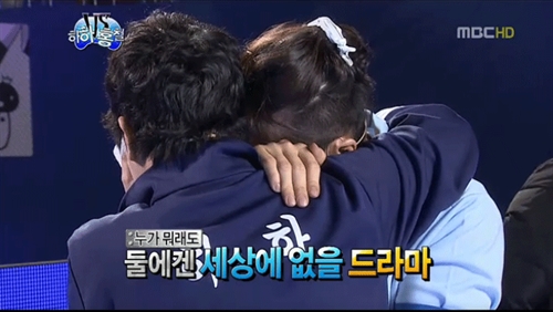28일 방송된 MBC <무한도전> '하하vs홍철' 대결편에서 서로의 우정을 확인하며 눈물을 쏟아 경기장 안이 온통 울음바다가 된 것.