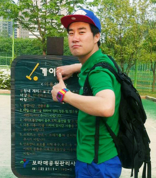 사진 속 산이는 '게이트'라고 쓰인 게시판 앞에서 '트'자를 가린 채 서 있는 모습이어서 사진을 접한 네티즌들의 웃음을 자아냈다.