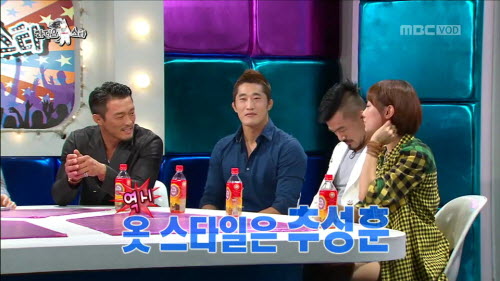 이날 방송은 외모는 거칠지만 마음만은 부드러운 '순정마초' 특집으로 추성훈, 김동현, 배명호, 신소율이 출연해 경기 중에 생겼던 다양한 에피소드와 그들의 몸값까지 속속들이 공개하며, 입담을 과시했다.