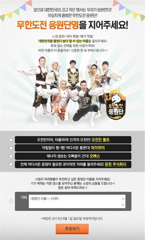 ☞ <무한도전> '응원단 이름' 투표하러가기