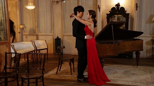 윤한-이소연 커플은 달콤하고 로맨틱한 웨딩촬영에 나섰다. 이소연은 로맨틱한 드레스와 발랄한 미니드레스에 이어 물랑루즈 콘셉트의 아찔한 레드드레스를 입고 촬영에 나섰다.