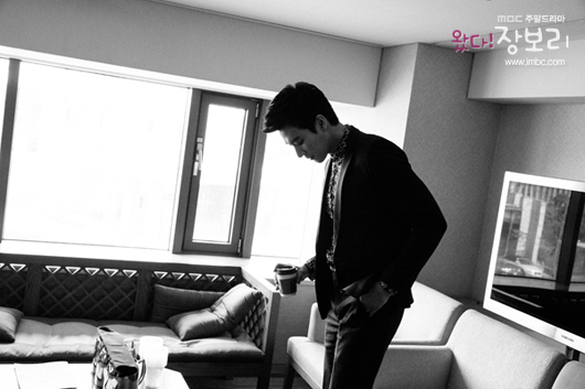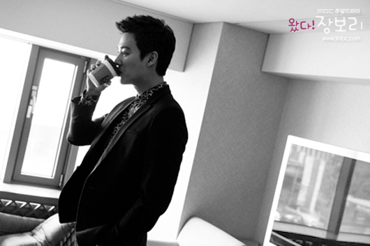 배우 오창석이 대기실에서 화보같은 포즈로 커피 마시고 있는 모습이 포착됐다.