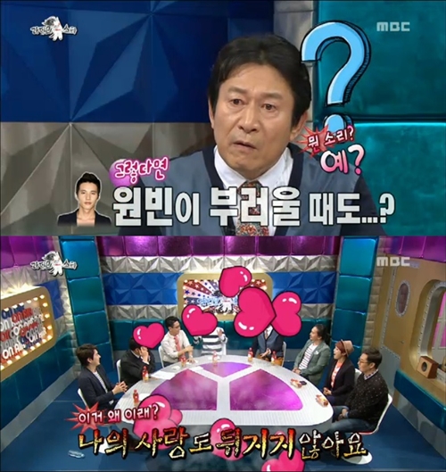 이에 MC 윤종신이 원빈이 부러울 때도 있냐고 묻자 김응수는 처음 듣는 얘기에 당황해 했다. 그동안 원빈과 이나영이 연인이라는 사실을 몰랐던 것. 하지만 곧 김응수는 "원빈이 이나영을 사랑하는 힘만큼 나의 사랑도 뒤지지 않는다"고 단호하게 말했다. 이어 "픽션의 세계에서는 따뜻한 사랑도 가능하니 내가 시나리오를 써서 직접 이나영을 캐스팅하겠다"는 계획도 밝혀 큰 웃음을 선사했다.