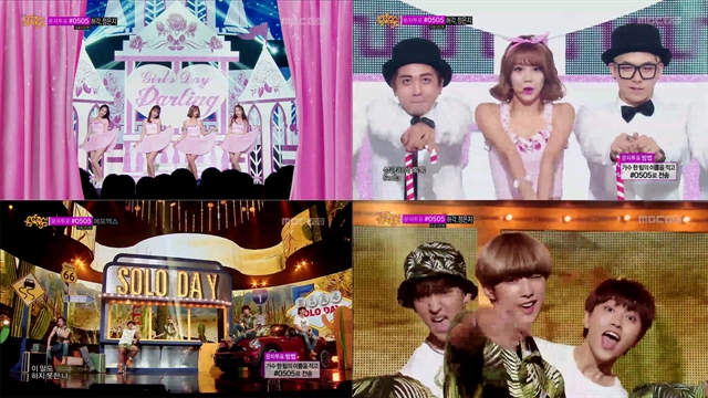 걸스데이가 먼저 바비인형과 같은 핑크빛 무대로 타이틀곡 ‘Darling’의 화려한 컴백을 알렸다. 살아있는 손동작과 날렵한 발동작, 엉덩이를 흔들거나 머리를 짚는 포인트 안무들이 귀여우면서도 섹시한 걸스데이만의 매력을 고스란히 담아내고 있었다. B1A4는 뜨거운 서부를 연상하게 하는 독특한 무대에서 자유분방한 분위기를 연출해냈다. 어쿠스틱하고 경쾌한 리듬 속에 익살스러운 표정을 아낌 없이 방출했으며, 곡 중간의 휘파람 소리 등 독특한 포인트 지점들이 공개되며 앞으로 무대마다 새로운 모습을 보여줄 것을 예고했다.